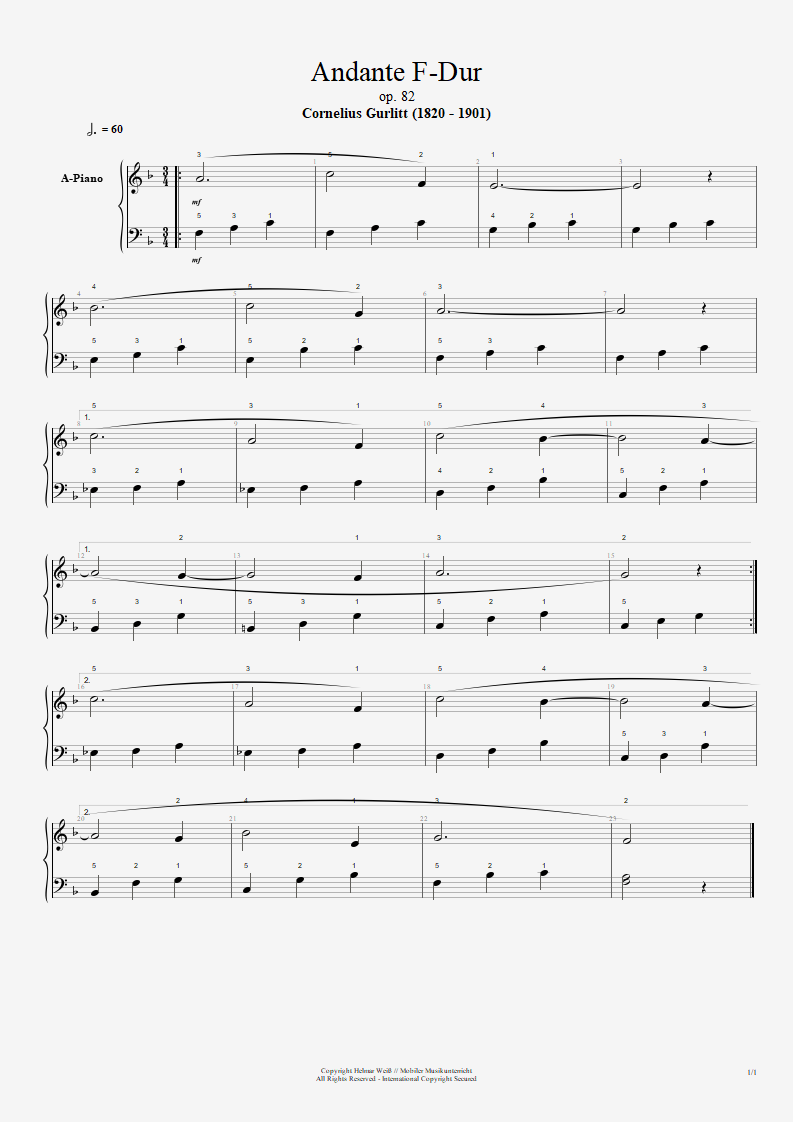 Cornelius Gurlitt - Op. 82, Andante, F-Dur (Noten + Playalongs)