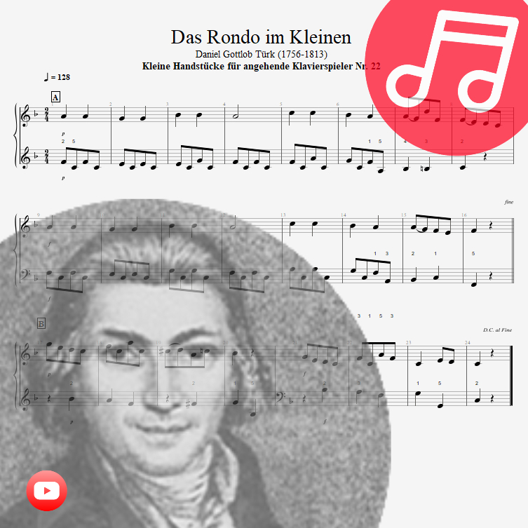 Daniel Gottlob Türk (1756–1813) war ein bedeutender deutscher Komponist und Musikpädagoge der Klassik. Er genoss während seiner Zeit einen hervorragenden Ruf als Klaviervirtuose und Lehrer. Türk hinterließ nicht nur eine Fülle an musikalischen Werken, sondern prägte auch die Musikpädagogik seiner Ära maßgeblich. Sein Einfluss reicht bis in die heutige Zeit, und "Das Rondo im Kleinen" ist ein beeindruckendes Beispiel für sein kompositorisches Talent.